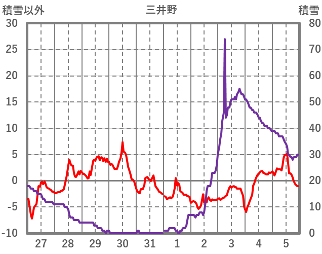 | 日 | 時 | 気温 | 降水 | 風向/風速 | 日照 | 積雪 | 降雪 |
