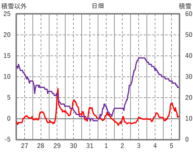 | 日 | 時 | 気温 | 降水 | 風向/風速 | 日照 | 積雪 | 降雪 |