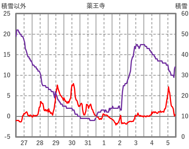 | 日 | 時 | 気温 | 降水 | 風向/風速 | 日照 | 積雪 | 降雪 |