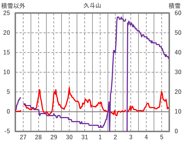| 日 | 時 | 気温 | 降水 | 風向/風速 | 日照 | 積雪 | 降雪 |