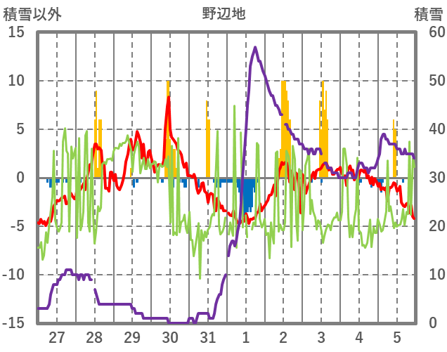 | 日 | 時 | 気温 | 降水 | 風向/風速 | 日照 | 積雪 | 降雪 |