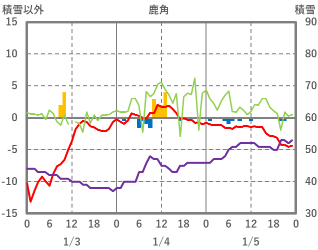 | 日 | 時 | 気温 | 降水 | 風向/風速 | 日照 | 積雪 | 降雪 |
