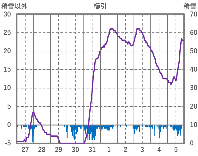 | 日 | 時 | 気温 | 降水 | 風向/風速 | 日照 | 積雪 | 降雪 |
