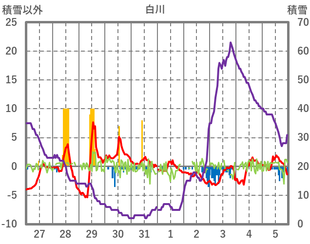 | 日 | 時 | 気温 | 降水 | 風向/風速 | 日照 | 積雪 | 降雪 |