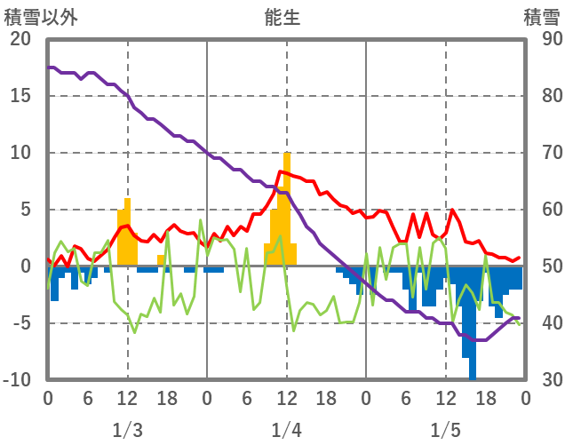 | 日 | 時 | 気温 | 降水 | 風向/風速 | 日照 | 積雪 | 降雪 |