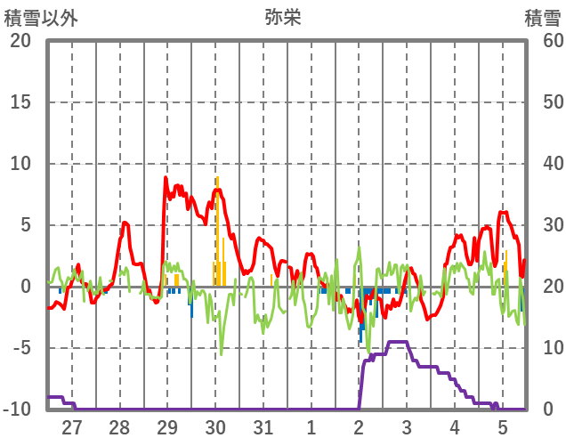 | 日 | 時 | 気温 | 降水 | 風向/風速 | 日照 | 積雪 | 降雪 |