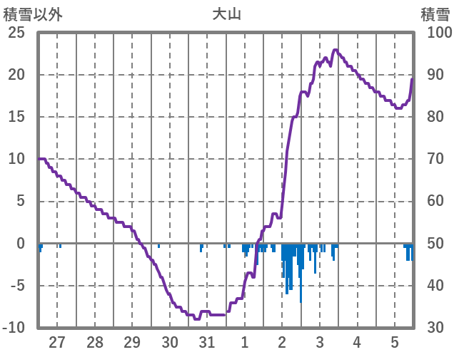 | 日 | 時 | 気温 | 降水 | 風向/風速 | 日照 | 積雪 | 降雪 |