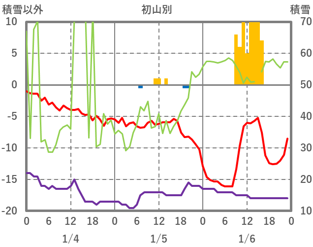 | 日 | 時 | 気温 | 降水 | 風向/風速 | 日照 | 積雪 | 降雪 |