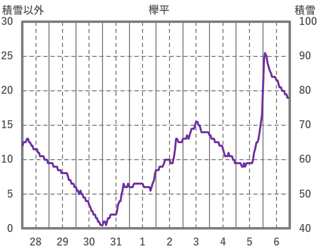 | 日 | 時 | 気温 | 降水 | 風向/風速 | 日照 | 積雪 | 降雪 |