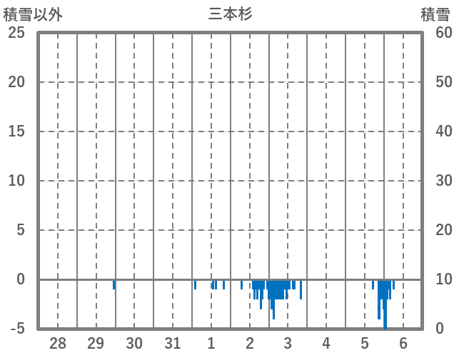 | 日 | 時 | 気温 | 降水 | 風向/風速 | 日照 | 積雪 | 降雪 |