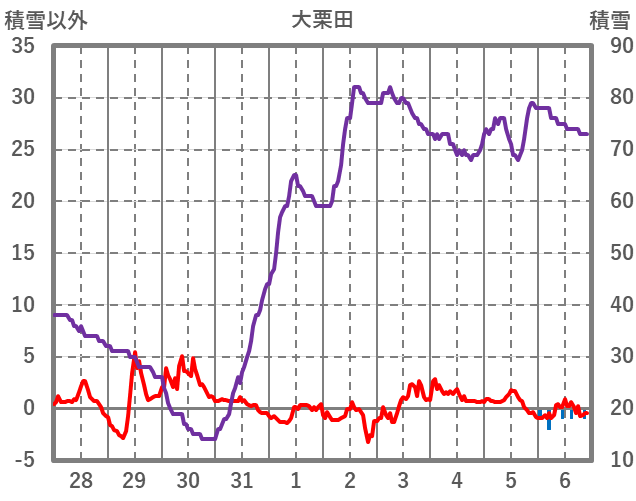 | 日 | 時 | 気温 | 降水 | 風向/風速 | 日照 | 積雪 | 降雪 |