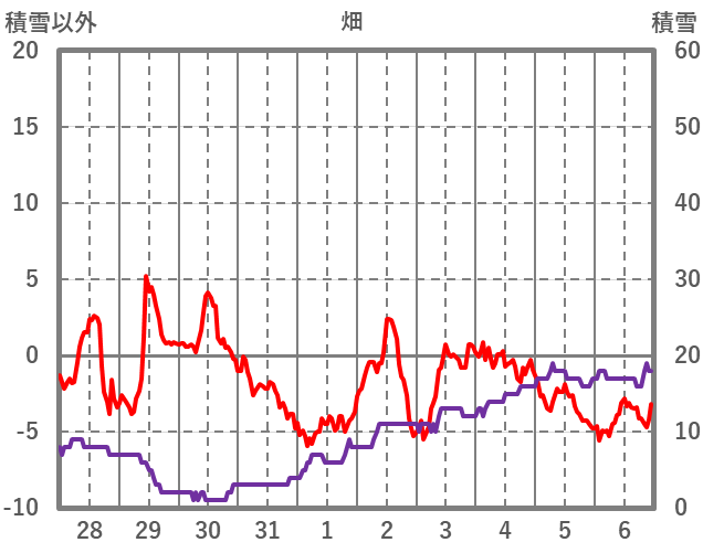 | 日 | 時 | 気温 | 降水 | 風向/風速 | 日照 | 積雪 | 降雪 |
