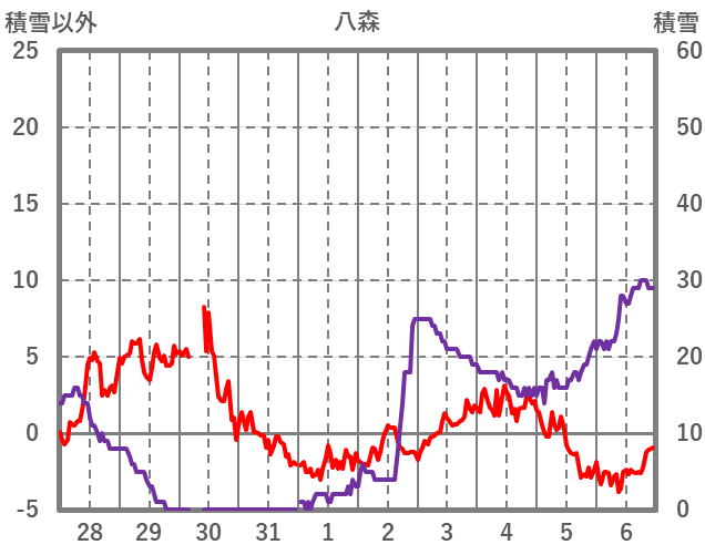 | 日 | 時 | 気温 | 降水 | 風向/風速 | 日照 | 積雪 | 降雪 |