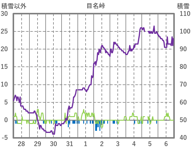 | 日 | 時 | 気温 | 降水 | 風向/風速 | 日照 | 積雪 | 降雪 |