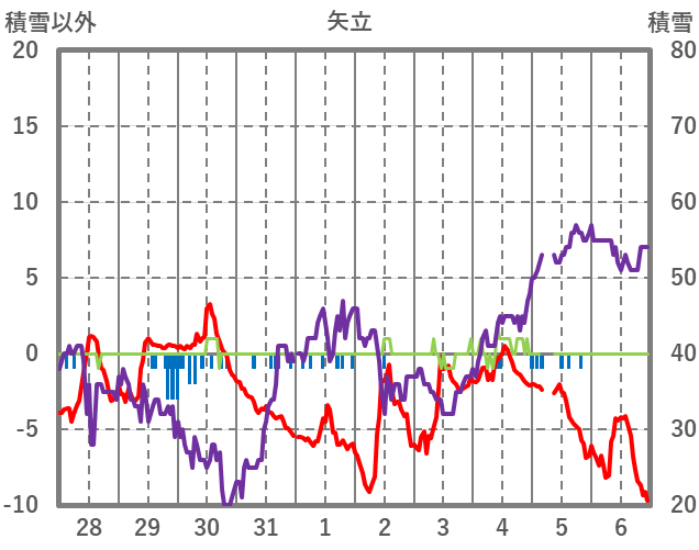 | 日 | 時 | 気温 | 降水 | 風向/風速 | 日照 | 積雪 | 降雪 |