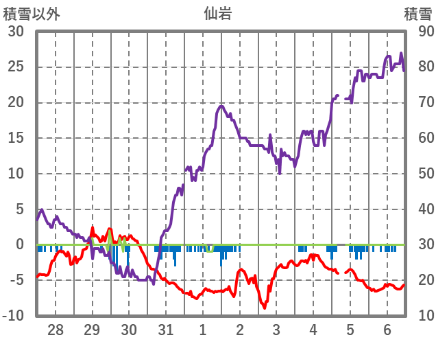 | 日 | 時 | 気温 | 降水 | 風向/風速 | 日照 | 積雪 | 降雪 |
