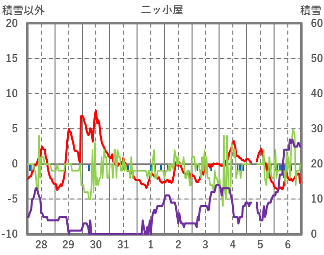 | 日 | 時 | 気温 | 降水 | 風向/風速 | 日照 | 積雪 | 降雪 |