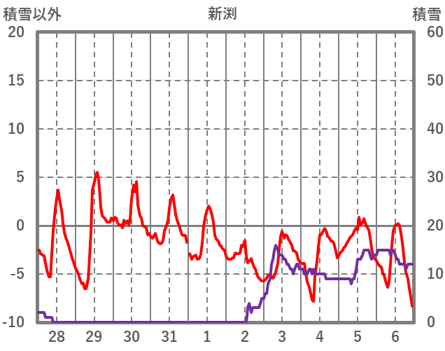 | 日 | 時 | 気温 | 降水 | 風向/風速 | 日照 | 積雪 | 降雪 |