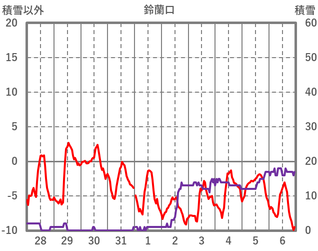 | 日 | 時 | 気温 | 降水 | 風向/風速 | 日照 | 積雪 | 降雪 |
