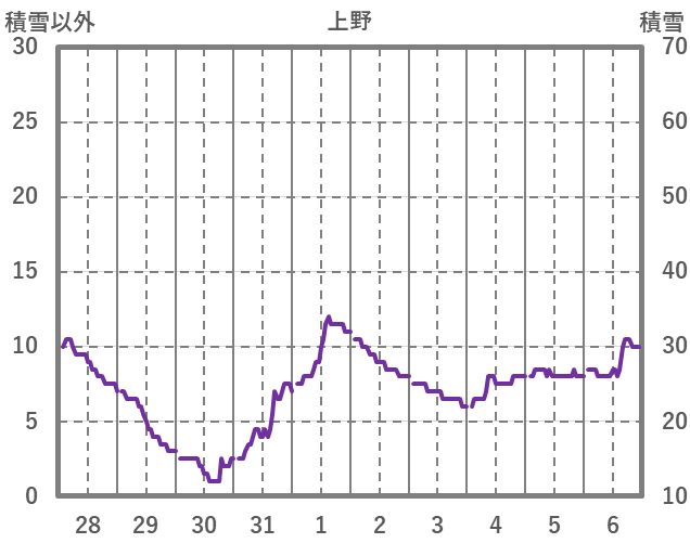 | 日 | 時 | 気温 | 降水 | 風向/風速 | 日照 | 積雪 | 降雪 |