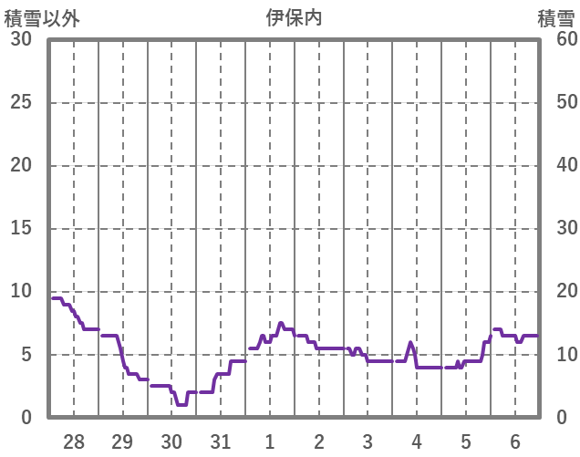| 日 | 時 | 気温 | 降水 | 風向/風速 | 日照 | 積雪 | 降雪 |