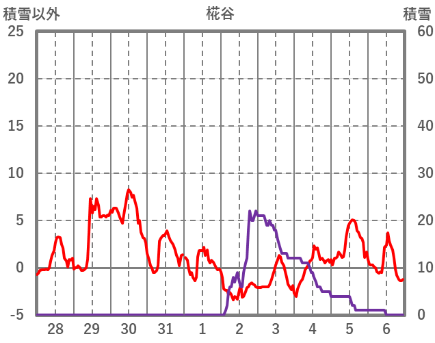 | 日 | 時 | 気温 | 降水 | 風向/風速 | 日照 | 積雪 | 降雪 |