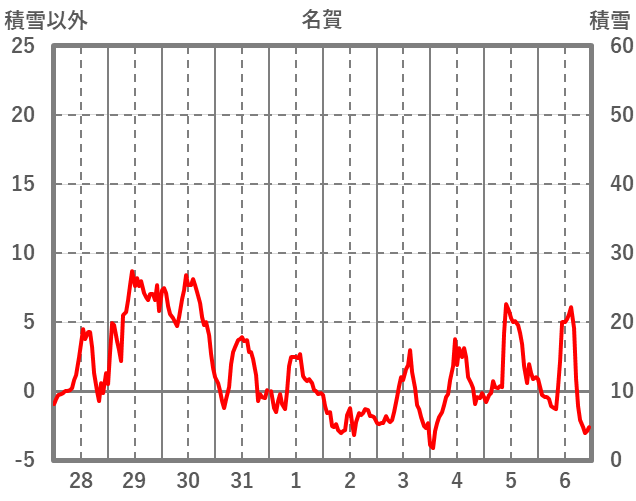 | 日 | 時 | 気温 | 降水 | 風向/風速 | 日照 | 積雪 | 降雪 |