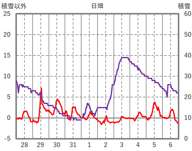 | 日 | 時 | 気温 | 降水 | 風向/風速 | 日照 | 積雪 | 降雪 |