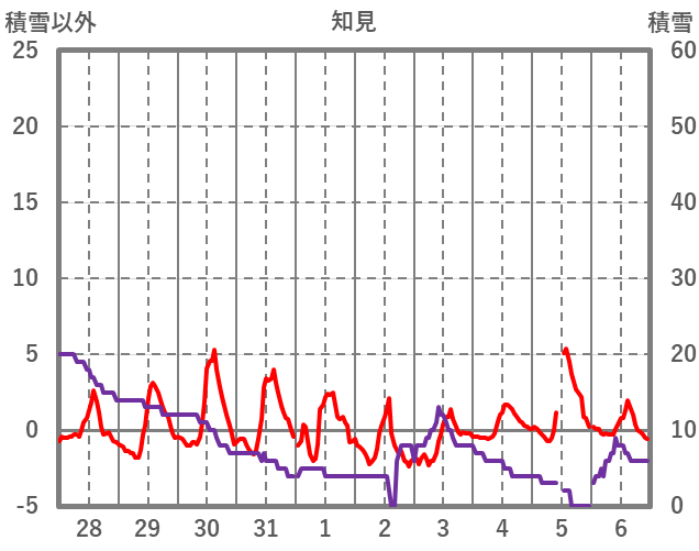| 日 | 時 | 気温 | 降水 | 風向/風速 | 日照 | 積雪 | 降雪 |