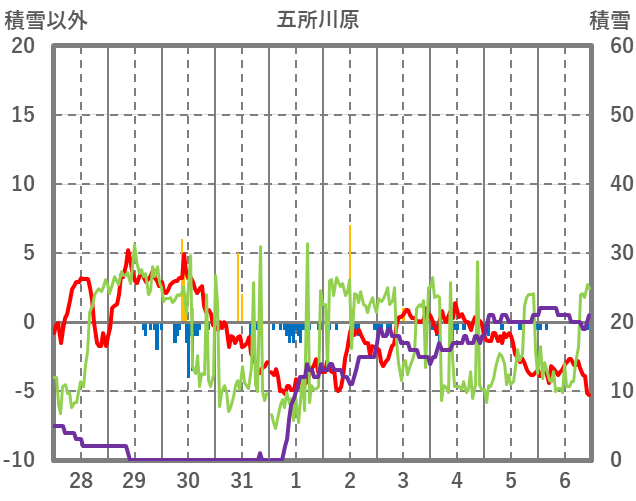 | 日 | 時 | 気温 | 降水 | 風向/風速 | 日照 | 積雪 | 降雪 |