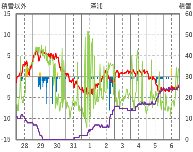 | 日 | 時 | 気温 | 降水 | 風向/風速 | 日照 | 積雪 | 降雪 |