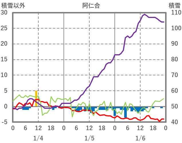 | 日 | 時 | 気温 | 降水 | 風向/風速 | 日照 | 積雪 | 降雪 |