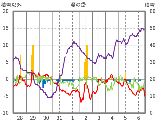 | 日 | 時 | 気温 | 降水 | 風向/風速 | 日照 | 積雪 | 降雪 |