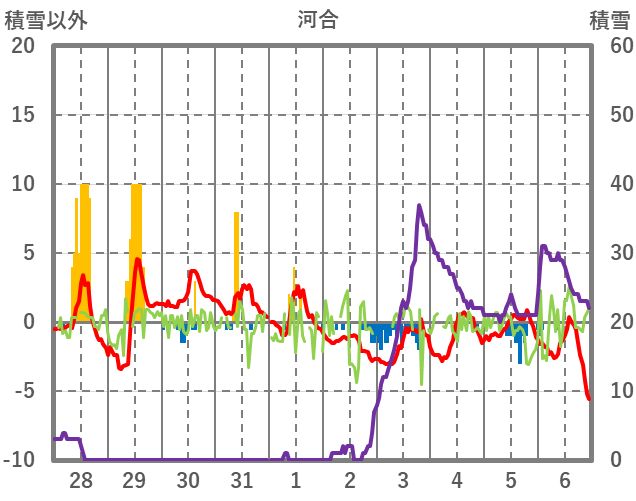 | 日 | 時 | 気温 | 降水 | 風向/風速 | 日照 | 積雪 | 降雪 |