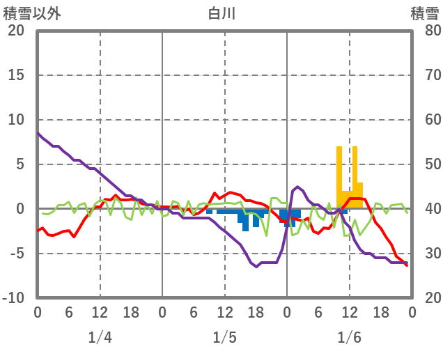 | 日 | 時 | 気温 | 降水 | 風向/風速 | 日照 | 積雪 | 降雪 |