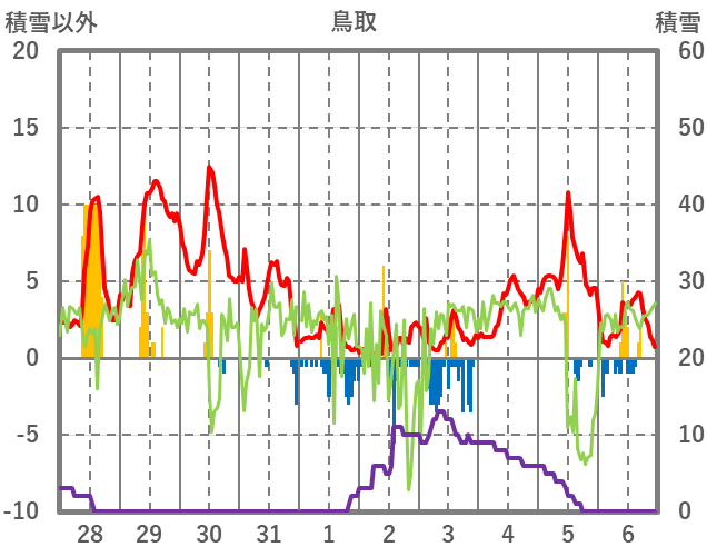 | 日 | 時 | 気温 | 降水 | 風向/風速 | 日照 | 積雪 | 降雪 |