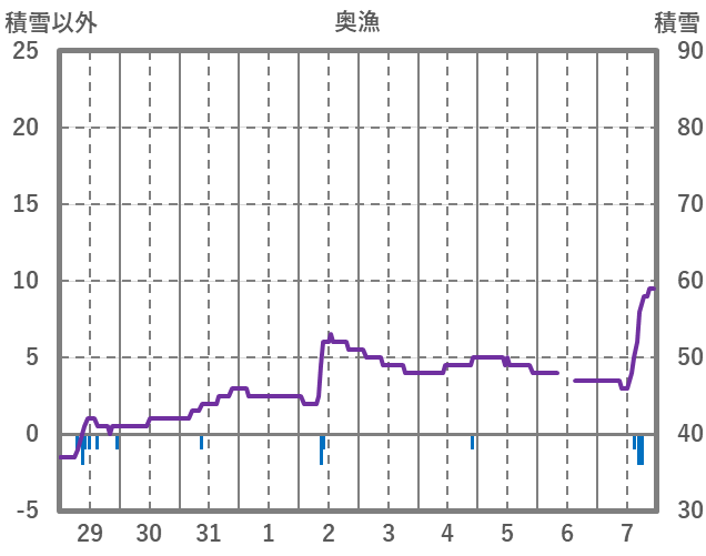 | 日 | 時 | 気温 | 降水 | 風向/風速 | 日照 | 積雪 | 降雪 |