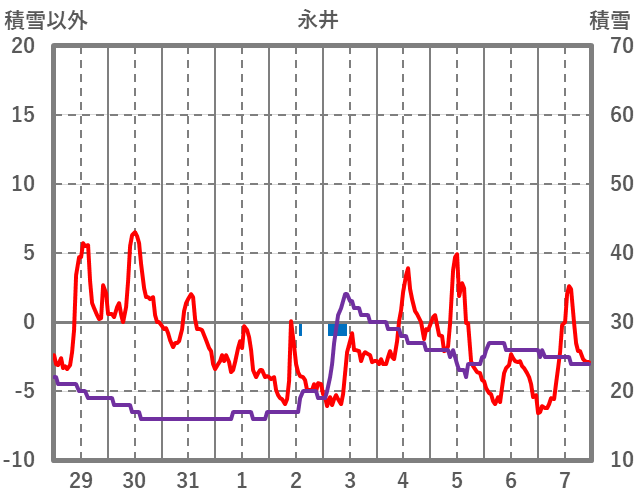 | 日 | 時 | 気温 | 降水 | 風向/風速 | 日照 | 積雪 | 降雪 |