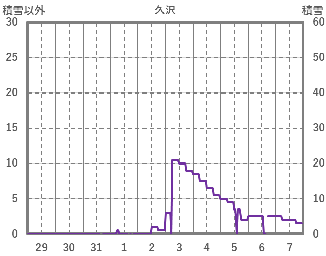 | 日 | 時 | 気温 | 降水 | 風向/風速 | 日照 | 積雪 | 降雪 |