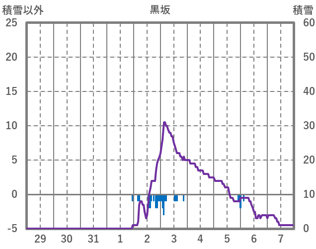 | 日 | 時 | 気温 | 降水 | 風向/風速 | 日照 | 積雪 | 降雪 |