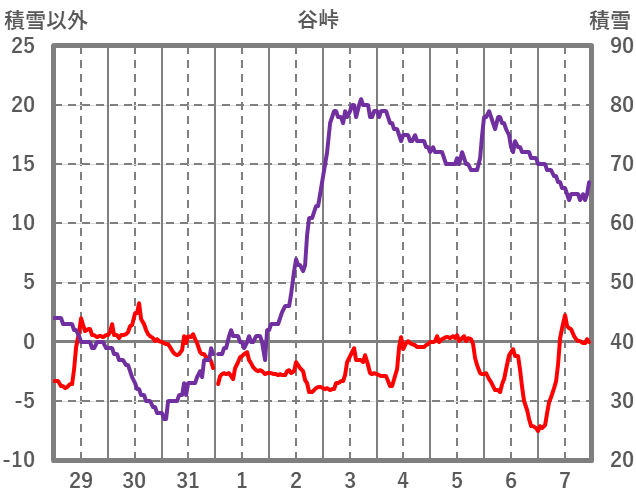 | 日 | 時 | 気温 | 降水 | 風向/風速 | 日照 | 積雪 | 降雪 |