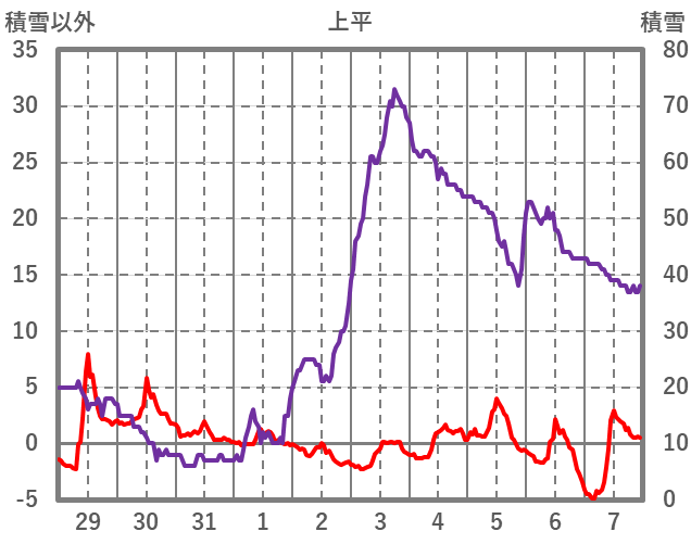 | 日 | 時 | 気温 | 降水 | 風向/風速 | 日照 | 積雪 | 降雪 |