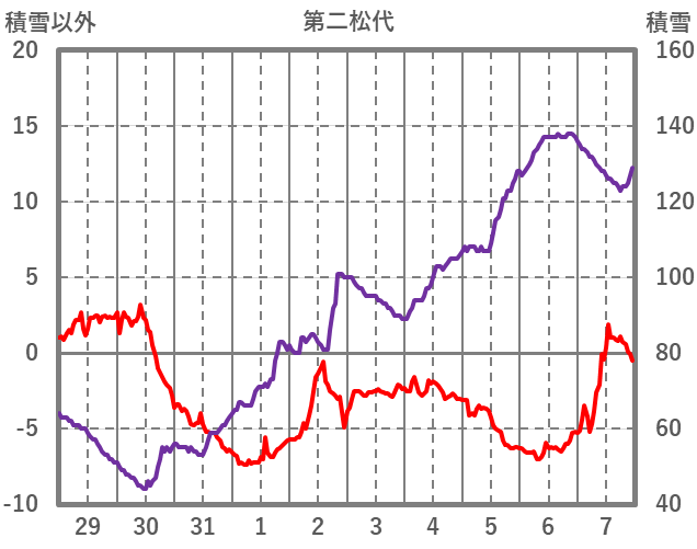 | 日 | 時 | 気温 | 降水 | 風向/風速 | 日照 | 積雪 | 降雪 |