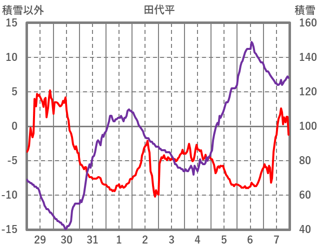 | 日 | 時 | 気温 | 降水 | 風向/風速 | 日照 | 積雪 | 降雪 |