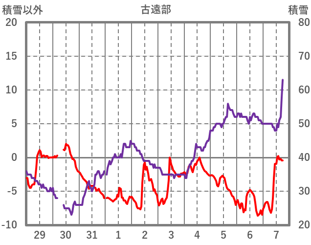 | 日 | 時 | 気温 | 降水 | 風向/風速 | 日照 | 積雪 | 降雪 |