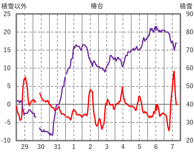 | 日 | 時 | 気温 | 降水 | 風向/風速 | 日照 | 積雪 | 降雪 |