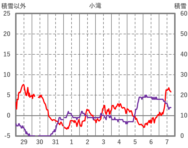 | 日 | 時 | 気温 | 降水 | 風向/風速 | 日照 | 積雪 | 降雪 |