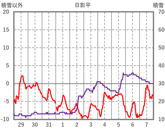 | 日 | 時 | 気温 | 降水 | 風向/風速 | 日照 | 積雪 | 降雪 |
