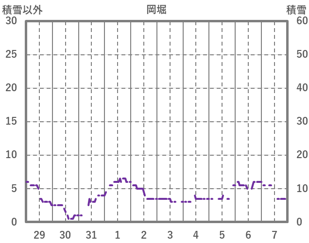 | 日 | 時 | 気温 | 降水 | 風向/風速 | 日照 | 積雪 | 降雪 |