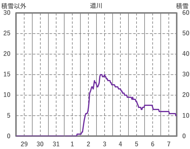 | 日 | 時 | 気温 | 降水 | 風向/風速 | 日照 | 積雪 | 降雪 |